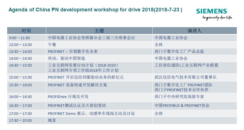 2018年7月23日~24日,中國電器工業(yè)協(xié)會(huì)變頻器分會(huì)三屆三次理事會(huì)暨西門子PROFINET技術(shù)開發(fā)傳動(dòng)專題研討會(huì)在北京隆重舉行。武漢邁信電氣技術(shù)有限公司作為國內(nèi)首家成功研發(fā)出PROFINET伺服并支持PROFIDrive行規(guī)的伺服廠商受邀參加。