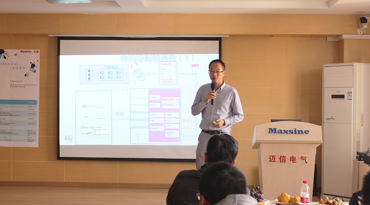 本次交流會由WPG Frank Yang主持,ST亞太區(qū)技術(shù)經(jīng)理Jode Wang、Jacky Lu、Junying Sun、Yolanda Zhang、ST華中區(qū)經(jīng)理Mark Yu、邁信電氣董事長許強(qiáng)博士、邁信電氣總工程師杜佳星等三十多位驅(qū)動與運(yùn)動控制專家、工程師出席,分享前沿技術(shù)研究并交流行業(yè)技術(shù)方案。