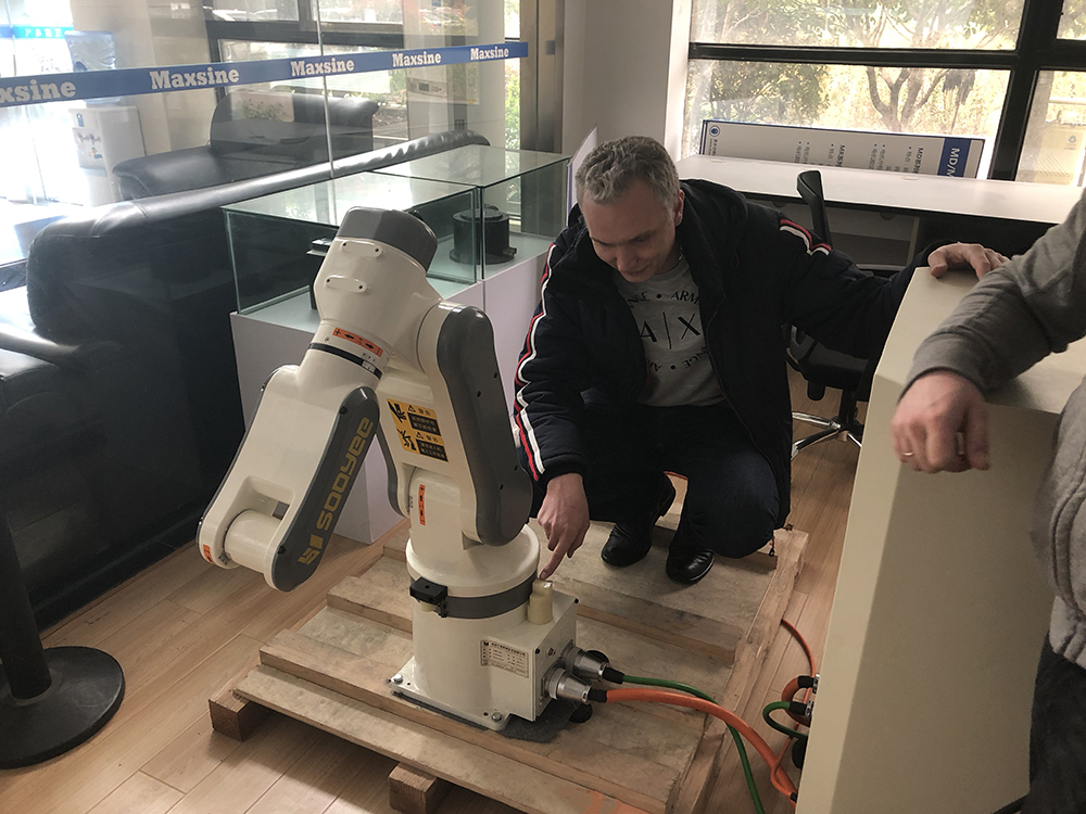 身為機器人應用廠家,展廳中的工業(yè)機器人引起了俄羅斯朋友的興趣,大家圍繞邁信自主研發(fā)的六軸多合一伺服驅動器EPR6及工業(yè)機器人相談甚歡。
