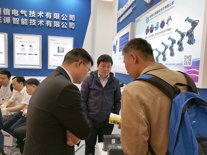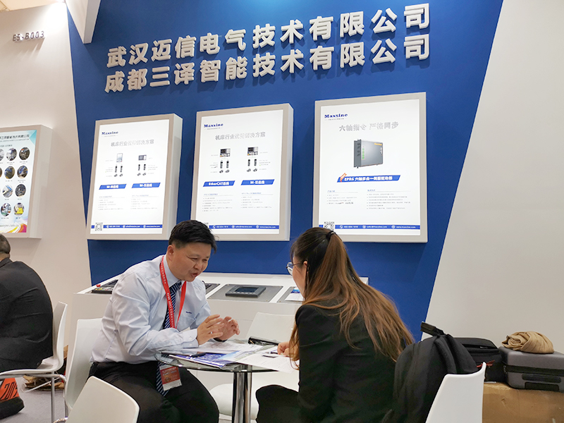 邁信電氣所在的E5館主要展品為數(shù)控系統(tǒng),作為數(shù)控系統(tǒng)的主要構成部分,伺服驅動器與伺服電機是E5館觀眾的主要關注對象。