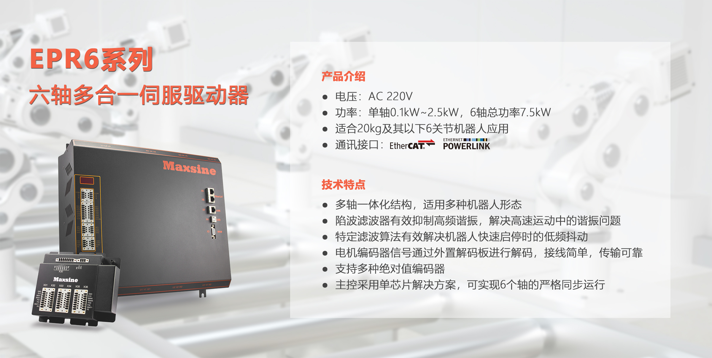 ▲ 邁信電氣自主研發(fā)的EPR6系列六軸多合一伺服驅(qū)動(dòng)器,代表伺服驅(qū)動(dòng)器的技術(shù)趨勢(shì):適用于現(xiàn)代工業(yè)的新功能、差異化性能、減少PCB尺寸、高可靠性。