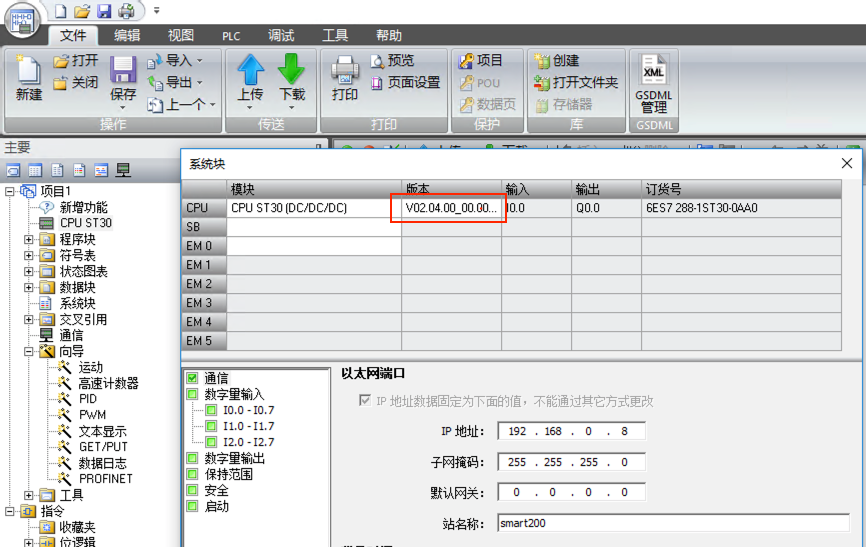 1. 創(chuàng)建PLC項目,確認PLC固件版本為V02.04