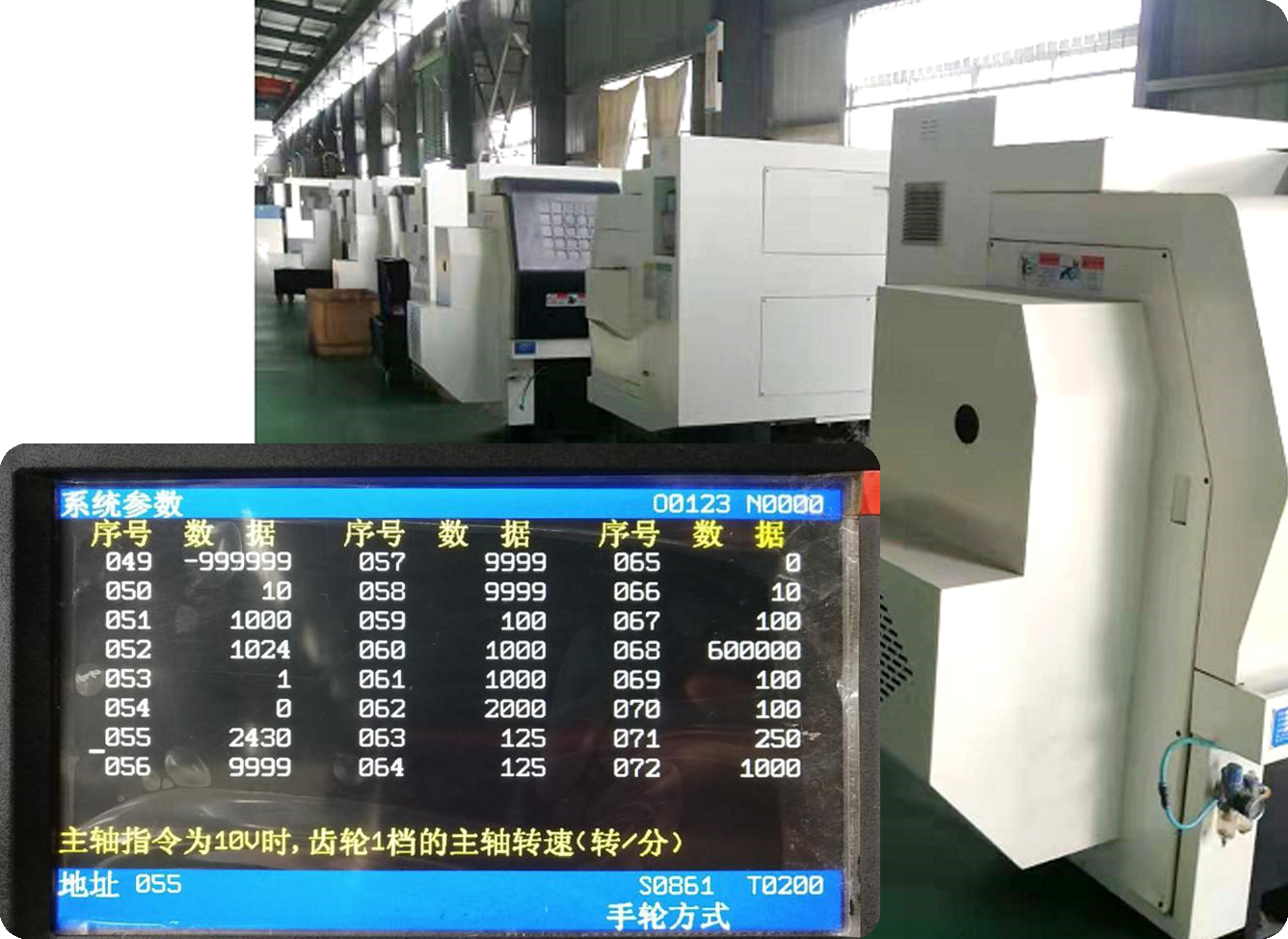 調(diào)節(jié)系統(tǒng)參數(shù),使給定速度值與實(shí)際速度值匹配,通過電機(jī)軸皮帶輪和主軸皮帶輪,調(diào)節(jié)P055參數(shù)(針對(duì)海德曼數(shù)控系統(tǒng),不同數(shù)控系統(tǒng)參數(shù)不一樣);