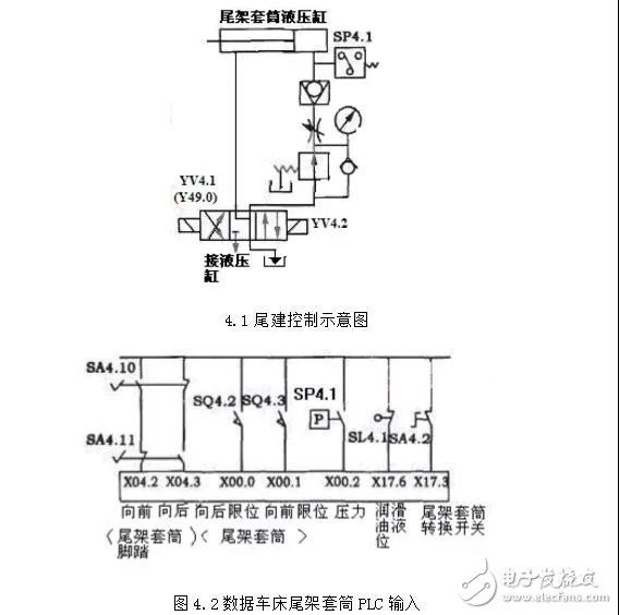 故障現(xiàn)象:該數(shù)控車(chē)床配備FANUC-OT系統(tǒng),當(dāng)腳踏尾座開(kāi)關(guān)使套筒頂尖頂緊工件時(shí),系統(tǒng)產(chǎn)生報(bào)警。尾架套筒的示意圖和PLC輸入開(kāi)關(guān)分別如圖4.1和4.2所示。