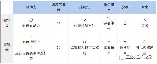 以下就各種驅(qū)動(dòng)器的特征比較表1和各個(gè)分類表2進(jìn)行說明。另外,在驅(qū)動(dòng)器中還有下述之外的液壓式,因?yàn)長CA通常不需要過大的驅(qū)動(dòng)力,所以在此省略。