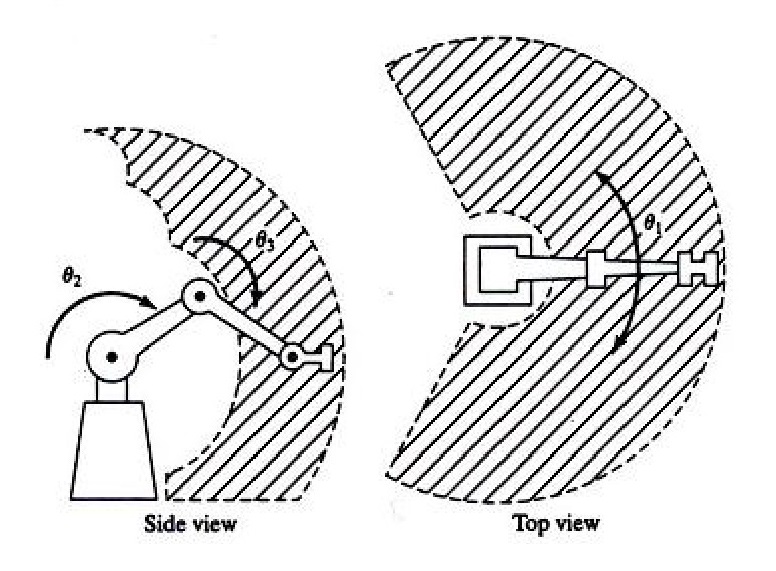 機(jī)器人手臂或手部安裝點(diǎn)所能達(dá)到的所有空間區(qū)域。其形狀取決于機(jī)器人的自由度數(shù)和各運(yùn)動(dòng)關(guān)節(jié)的類(lèi)型與配置。機(jī)器人的工作空間通常用圖解法和解析法兩種方法進(jìn)行表示。