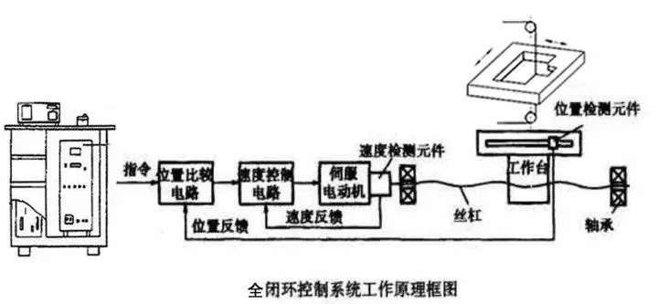 全閉環(huán)控制簡(jiǎn)稱閉環(huán)控制(closed-loop control system)則是由信號(hào)正向通路和反饋通路構(gòu)成閉合回路的自動(dòng)控制系統(tǒng),又稱反饋控制系統(tǒng)。由伺服電機(jī)、比較線路、伺服放大線路、速度檢測(cè)器和安裝在工作臺(tái)上的位置檢測(cè)器(直線光柵尺)組成,通過(guò)軟件實(shí)時(shí)補(bǔ)償絲桿的精度誤差和換向回差,自動(dòng)檢測(cè)并與指令值進(jìn)行比較,用差值進(jìn)行控制。
