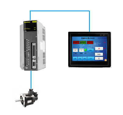 1、伺服驅(qū)動器和人機界面直接通訊,人機界面下發(fā)宏指令給伺服驅(qū)動器完成操作,伺服在速度模式下接受人機界面指令實時的更改速度和方向。