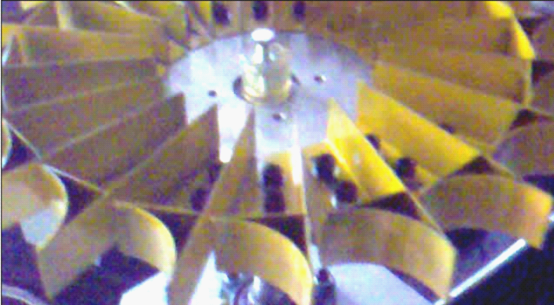 分揀機(jī)使用一臺(tái)伺服驅(qū)動(dòng)和電機(jī),電機(jī)通過齒輪控制分度盤進(jìn)行平穩(wěn)的轉(zhuǎn)動(dòng),來控制物品運(yùn)行到指定軌道。分度盤如下圖: